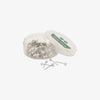 Knappenål med rundt hoved. Kommer i en smart genlukkelig æske.